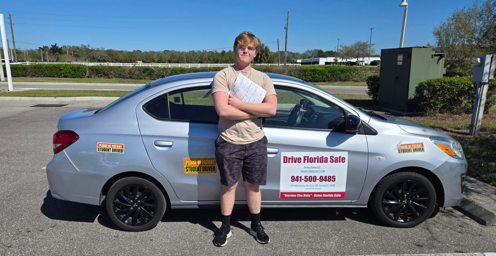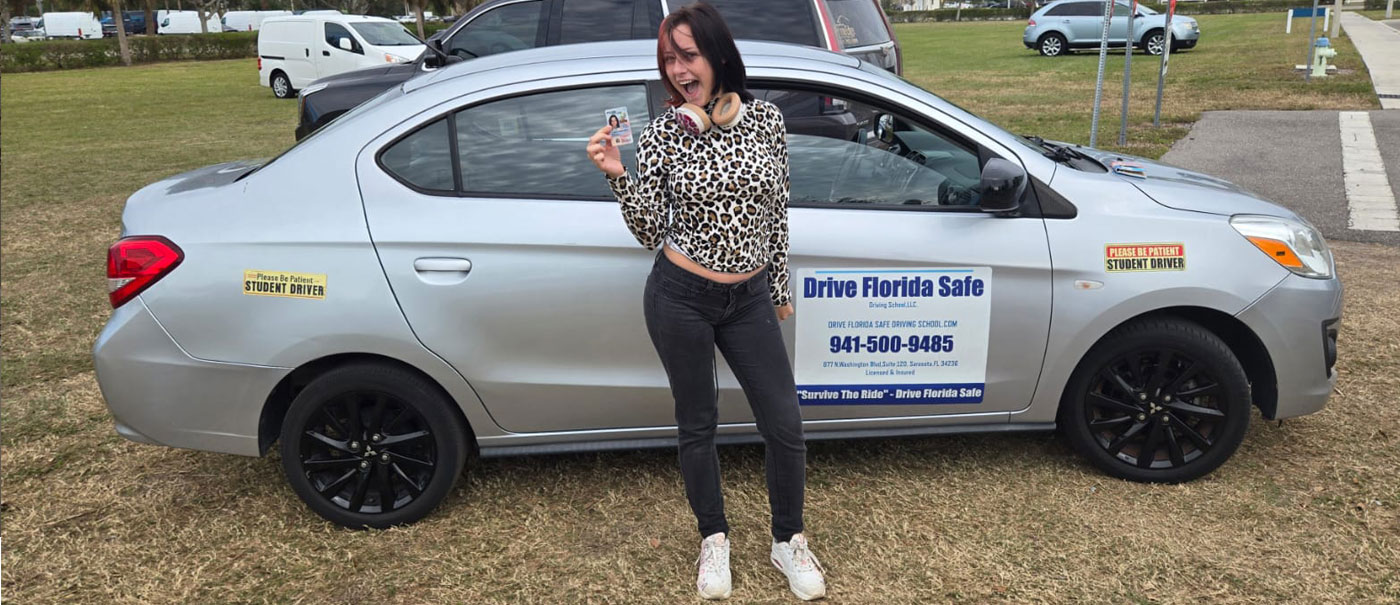 All the cars used for driver training in Drive Florida Safe are equipped with a brake and rear view mirror on the instructor's side.